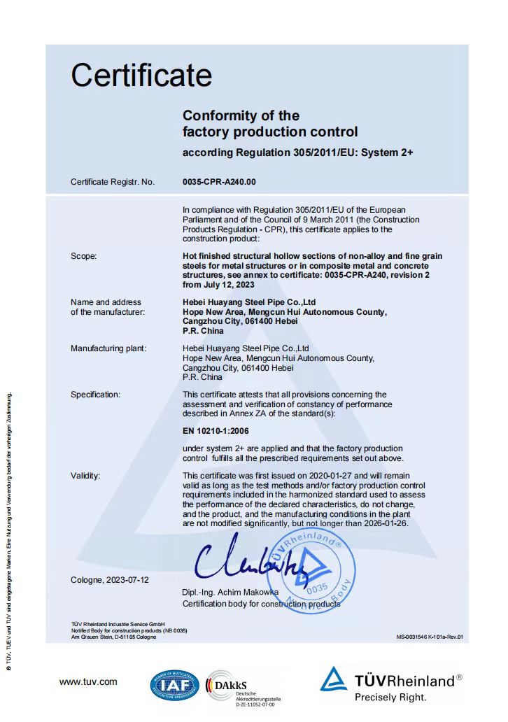 河北華洋鋼管有限公司公司創(chuàng)建于2005年,注冊(cè)資金5億元,公司占地面積1000余畝,固定資產(chǎn)12億元,年銷售收入近100億元,現(xiàn)有員工600余人。“華洋牌"高頻直焊鋼管被評(píng)為“河北省名牌產(chǎn)品”,年生產(chǎn)能力可達(dá)260萬(wàn)噸,2024年河北華洋鋼管有限公司榮獲河北省百?gòu)?qiáng)民營(yíng)企業(yè)(69位),河北省百?gòu)?qiáng)制造業(yè)(57位)榮譽(yù)稱號(hào)。